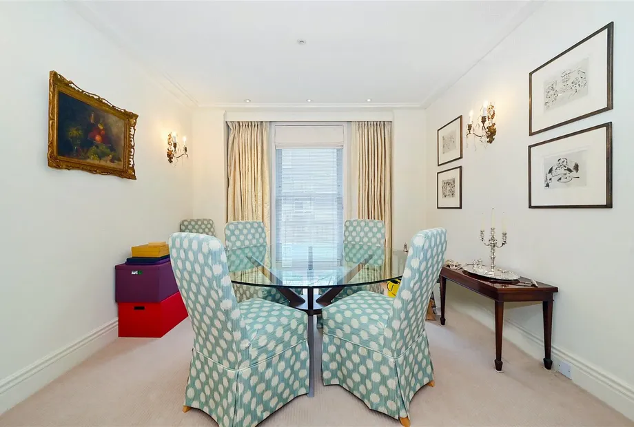 The property which is yards from the open expanses of Regent's Park comprises four bedrooms, two bathrooms, an additional WC, reception room, dining room and a separate kitchen.